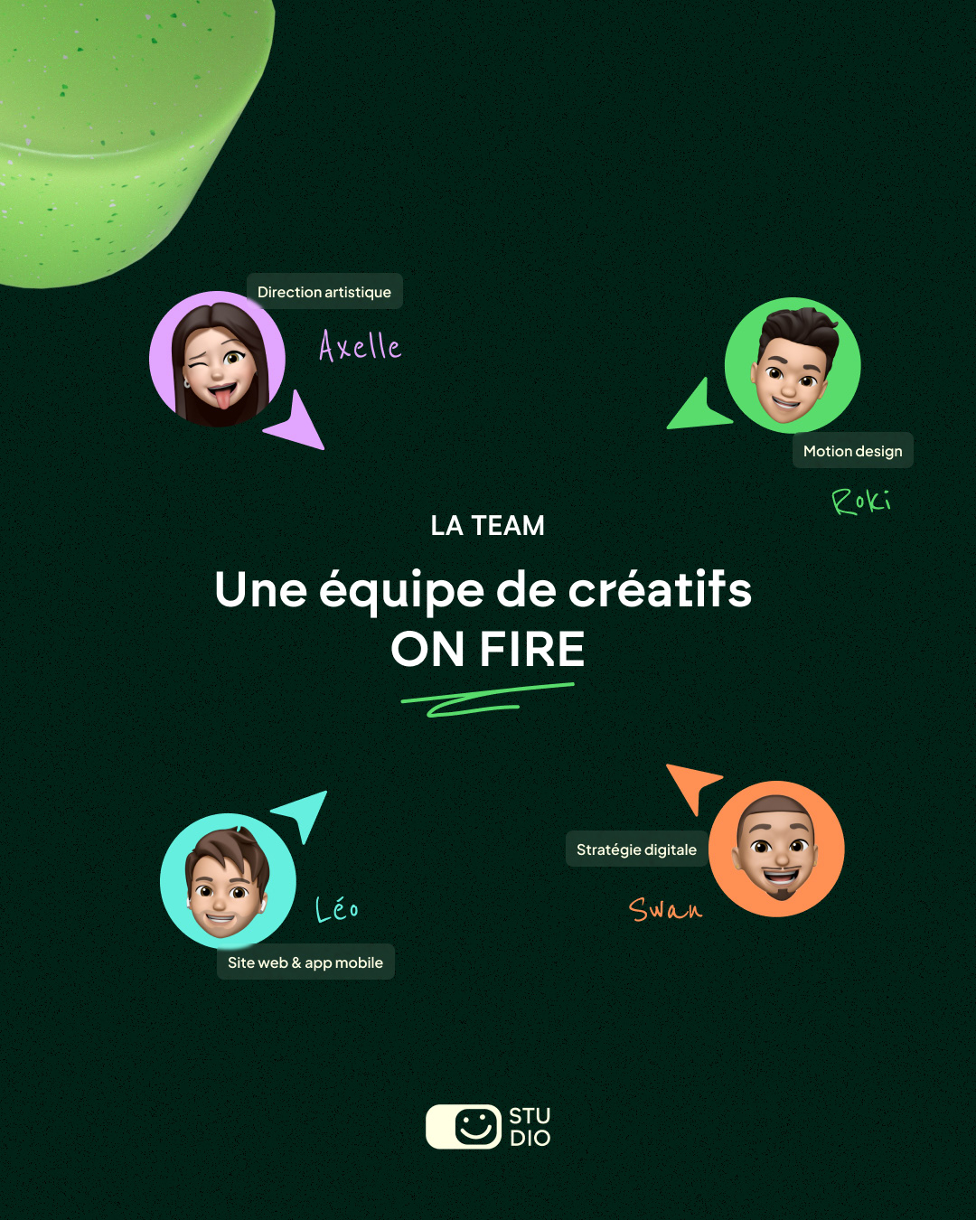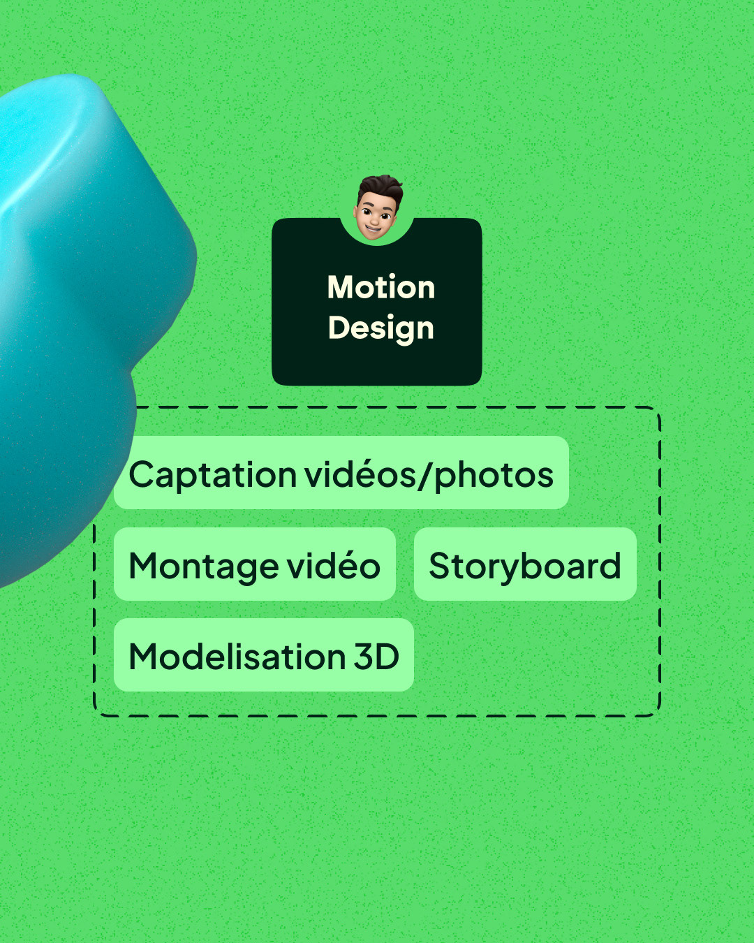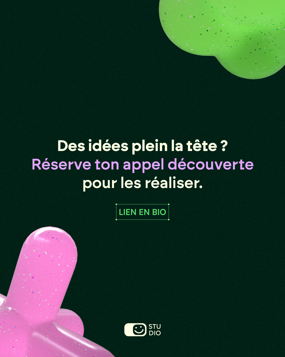 Intégration des éléments 3D dans des visuels social media afin de renforcer la présence et la reconnaissance de Modjoy Studio.